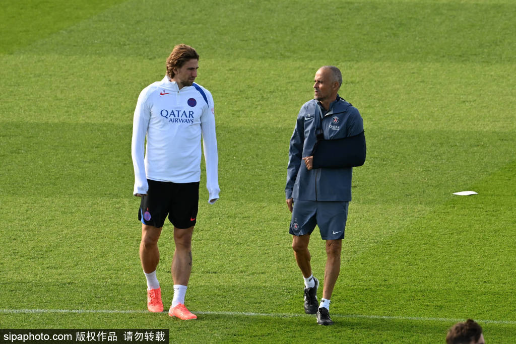 巴黎圣日耳曼的赛前训练吸引了众多媒体的目光,而俱乐部主席纳赛尔·阿尔赫莱菲和体育总监路易斯·坎波斯的现身更是引发了广泛讨论。两人全程站在训练场边,密切关注着球队的备战情况,尤其是维蒂尼亚的状态。
